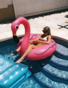 Vi brukar ha vår Flamingobadring med oss när vi sticker ut med båten. Våra ungar älskar den! Det är så roligt att sitta och titta på dem när de leker och skrattar i vattnet.
