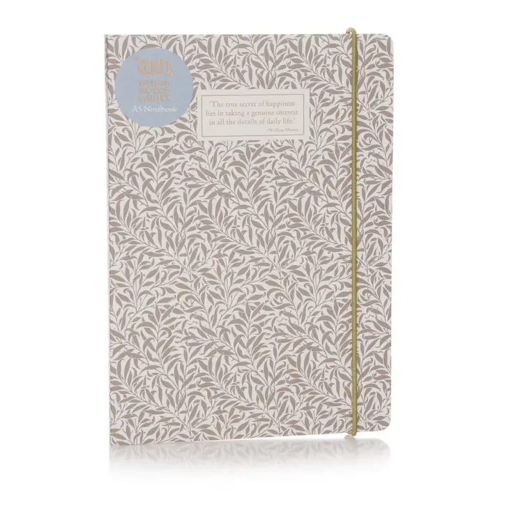 Perfekt när du vill ha ett riktigt snyggt anteckningsblock. Exklusiv, inbunden, linjerad anteckningsbok i A5 format, i William Morris klassiska motiv Willow Grey, med citat på framsidan av William Morris.