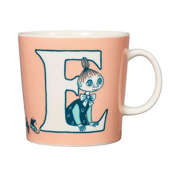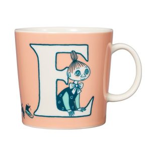 Ett måste för muminsamlaren – Muminmugg Alfabetsmugg, bokstaven E. Muggen rymmer 4 dl, och är en lite större mugg som lämpar sig för tedrickaren.