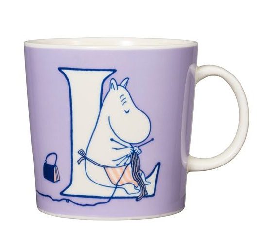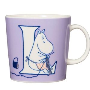 Ett måste för muminsamlaren – Muminmugg Alfabetsmugg, bokstaven L. Muggen rymmer 4 dl, och är en lite större mugg som lämpar sig för tedrickaren.