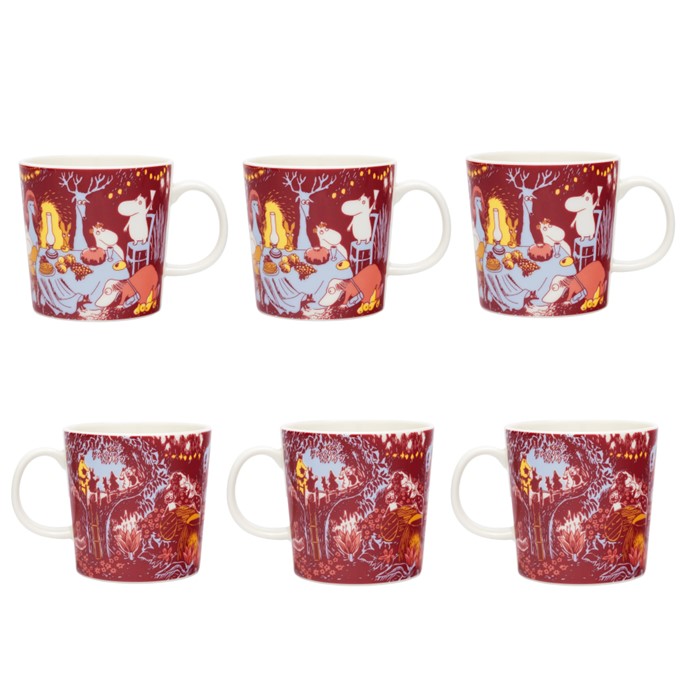 Arabia Muminmugg – Festliga Stunder – 2025 – 6-pack. Köp denna vintriga jubileumsmugg till förmånligt pris! Handla 6 muggar till 5% rabatt! Ordinarie pris 1974 kr, du betalar 1879 kr – Fraktfritt! Alla muggar har samma motiv, men olika fram och baksida,
