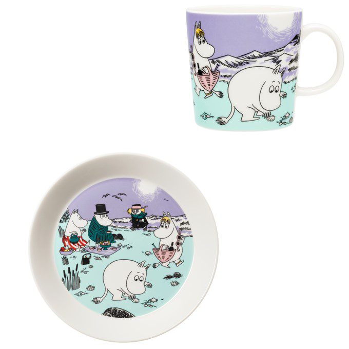 Arabia Muminserie – En dag på stranden – mugg och tallrik. Säljs under begränsad tid mellan 7 maj – 30 september.