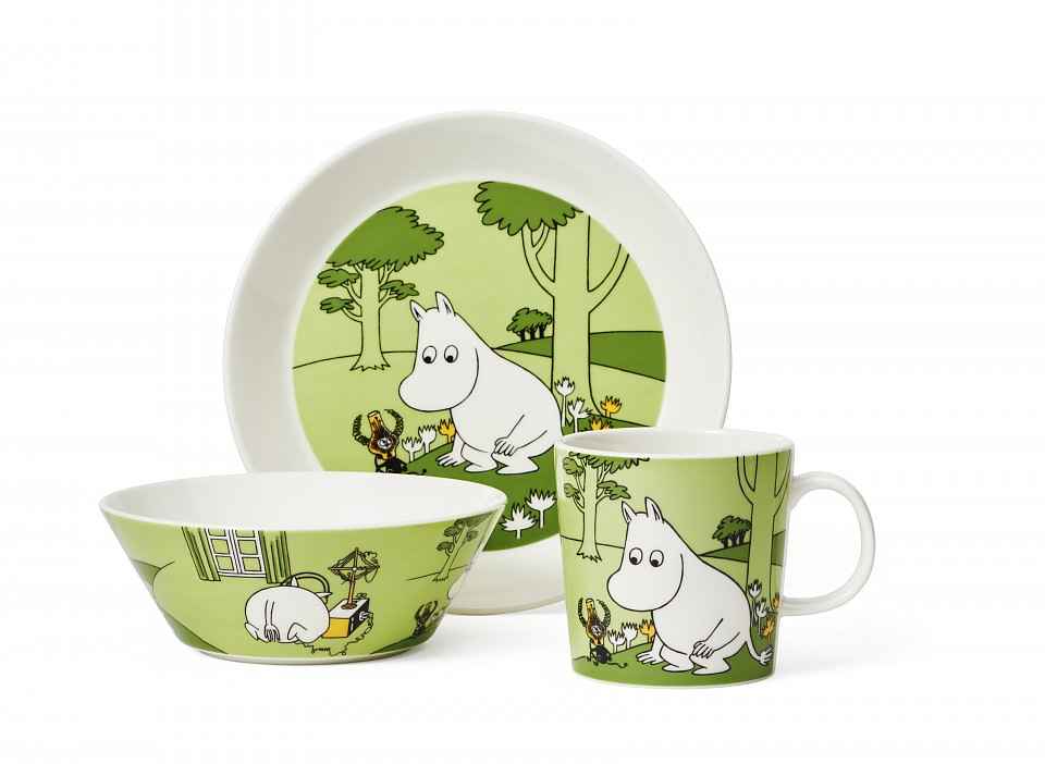 Motivet på den nya Muminmuggen, skålen och tallriken är från Tove Janssons serie Mumintrollet och Marsinnevånarna från år 1957, som senare också gavs ut i del fyra av seriealbumet med Mumin-serier.