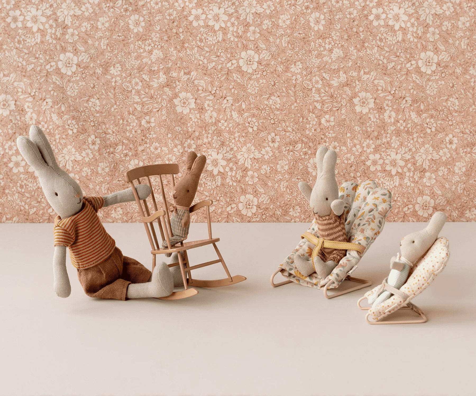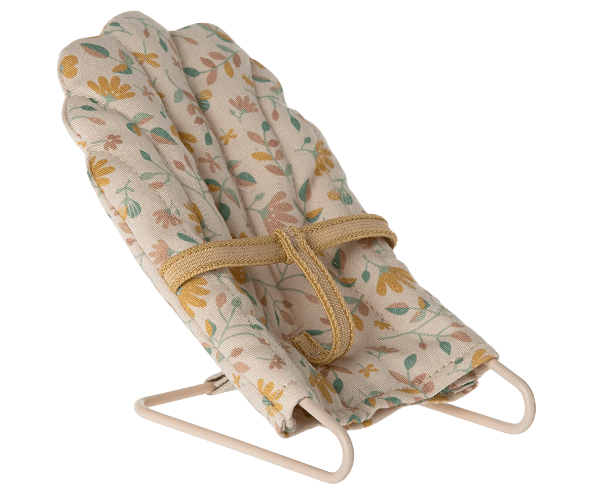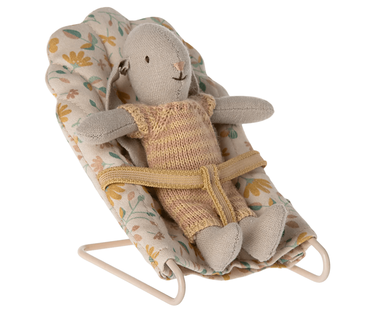 Fin babysitter som passar musbarn och kaniner i storlek micro. Alla bebisar brukar älska att sitta och gunga i sin babysitter, så det finns ingen anledning att tro att våra små bebisar från Maileg skulle vara annorlunda på något sätt. Kaninen köps separat.