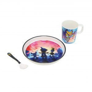 Superfint set, Bamse Barnservis, med motiv från Bamse Vulkanön från Rätt Start. Innehåller en mugg med ett handtag som rymmer 250 ml, flat tallrik med kant som gör att maten håller sig kvar samt en sked som passar perfekt till tex yoghurt eller glass. Det blir alltid roligare att äta när man har fina tillbehör!