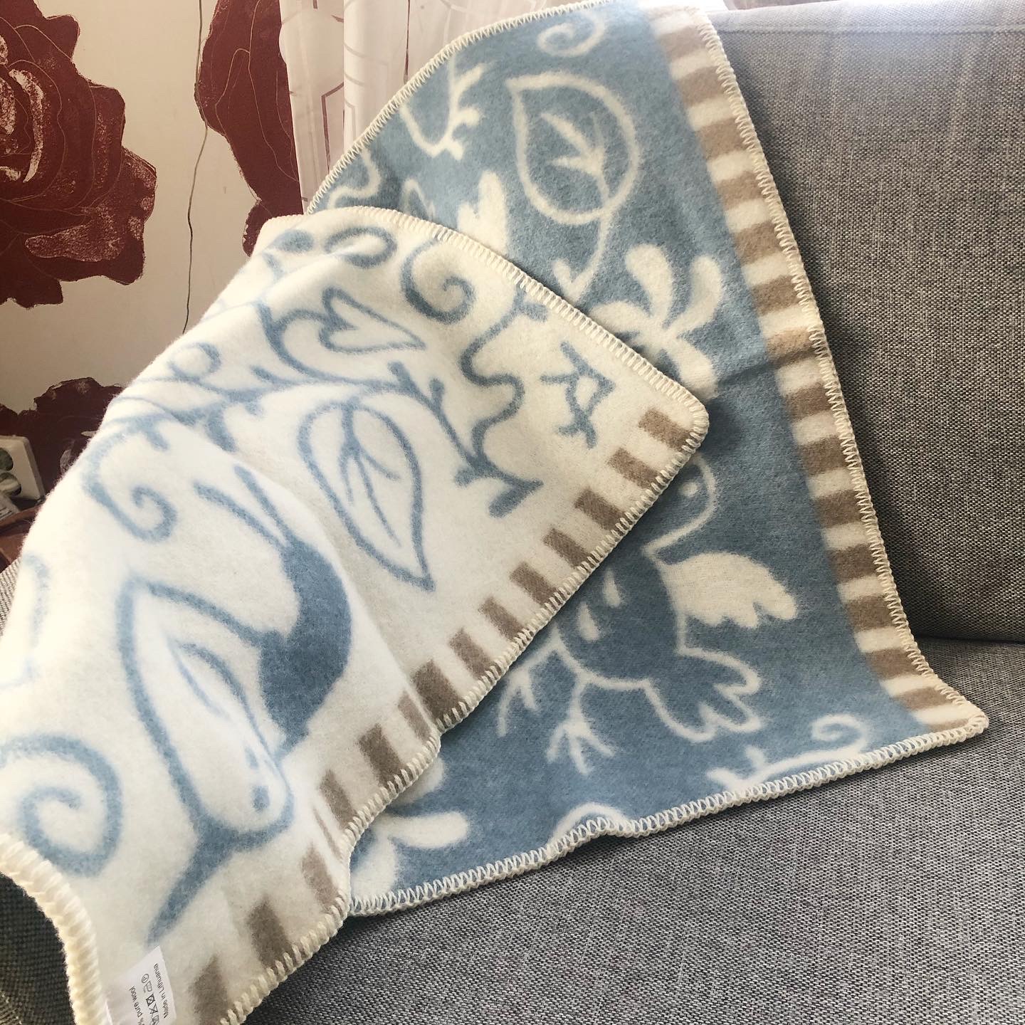 - Duvblå med vackert lekfullt mönster i vitt och brun/vita detaljer på kanterna.