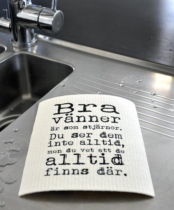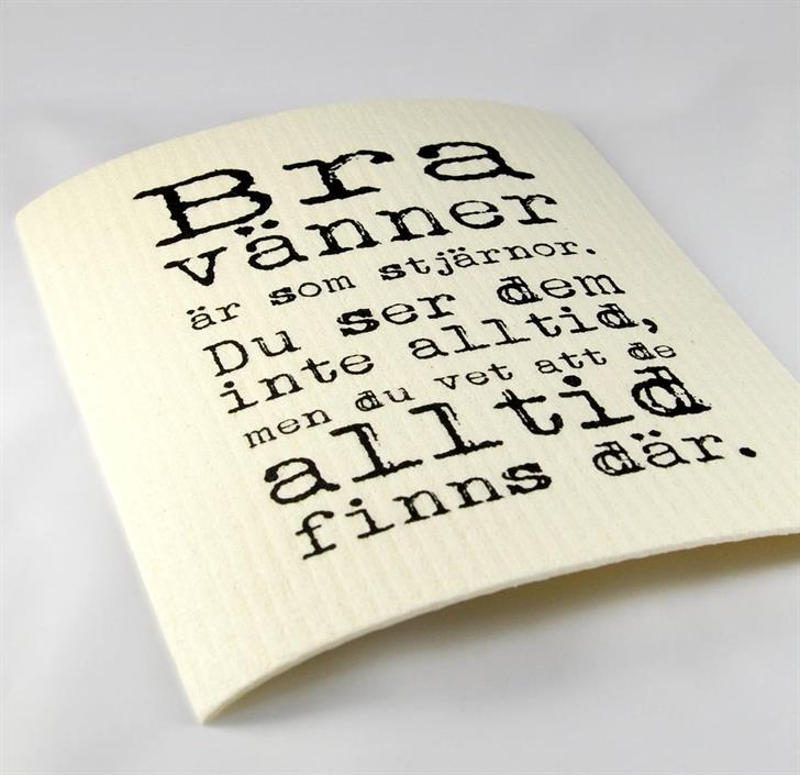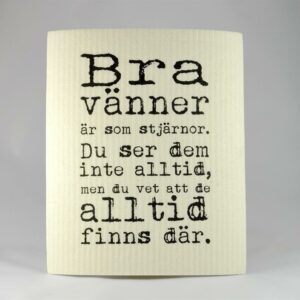 Visa dina vänner uppskattning med vår fina disktrasa Bra Vänner. Ge bort den tillsammans med vår bricka Bra Vänner, stick ner den i blombuketten, skicka den med posten. Vit disktrasa med texten ”Bra vänner är som stjärnor. Du ser dem inte alltid, men du vet att de alltid finns där”.