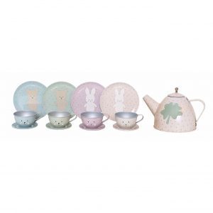Lägstapris senaste 30 dagarna:Söt dockservis i plåt med tillhörande väska i papp. Komplett liten teservis i totalt 15 delar med alla tillbehör som behövs till tebjudningen. Duka upp och bjud dina nallar och dockor på fika i vår tåliga teservis. Gullig dockservis med kompisarna Teddy och Búnny i fina färger.