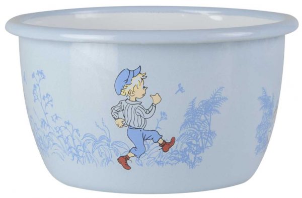 Ljust blå skål i emalj, motivet är hämtat ur Astrid Lindgrens sagor om Emil i Lönneberga och hans Lillasyster Ida. Skålen är gjord i emalj och den rymmer 3 dl. och materialet tycker vi på Lilla Stork är idealiskt. Emalj är ett klassiskt material som bara blir vackrare med åren. Vi har också fina muggar att köpa till, med samma motiv. Du hittar den här.