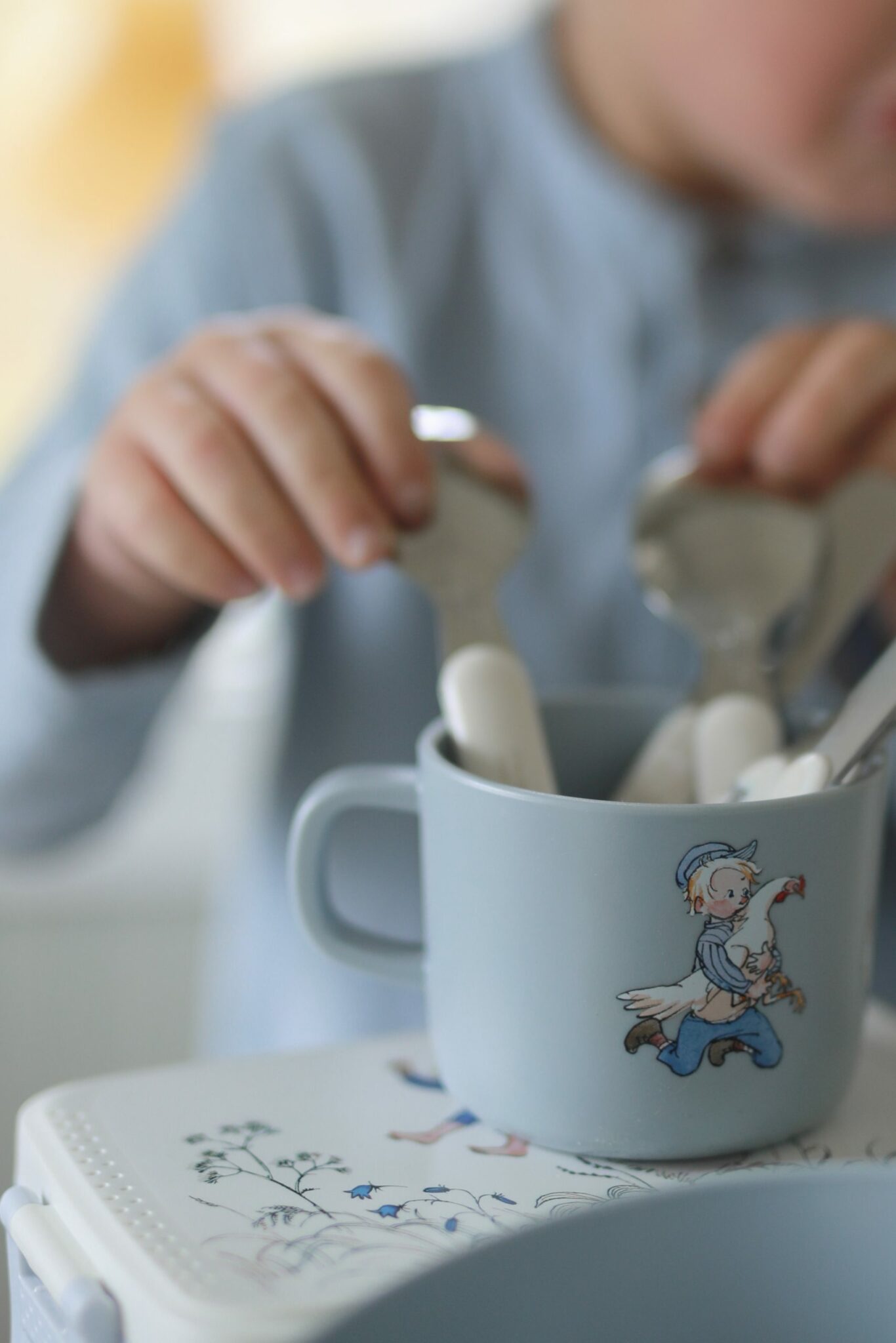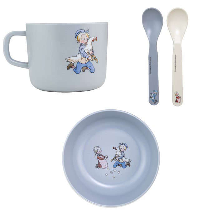 Praktisk barnservis med fint motiv. Består av fyra delar; mugg med öra, djup skål och två skedar. Motiv Emil. Ida och hönan. Beställ servisen till paketpris. Ord pris 267 kr Du betalar 255 kr.