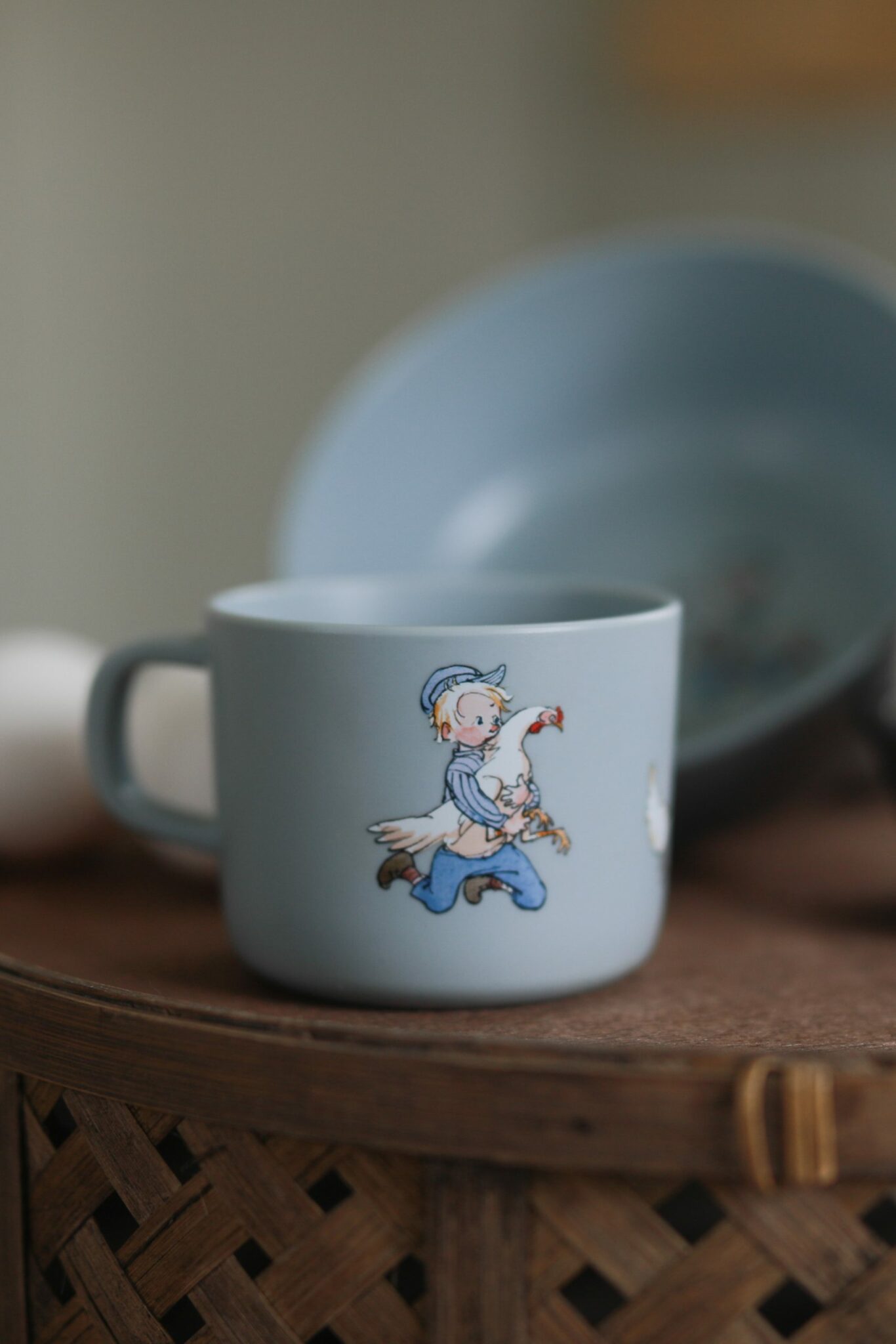 Lägstapris senaste 30 dagarna:Härligt och glatt mönster på den praktiska barnmuggen med handtag. Blå mugg på vilken Emil syns med en höna.
