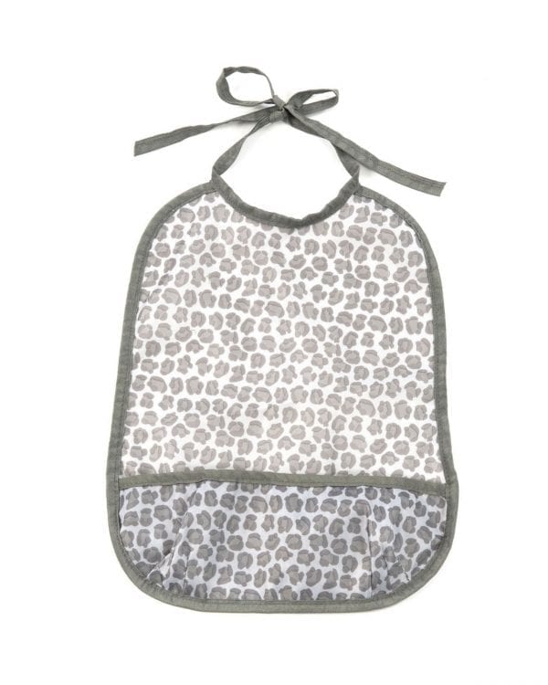Det är roligt med mat! Men i början är det inte alltid så lätt, då är bra med en haklapp på sig som fångar upp det mesta som hamnar fel, och som sedan är lätt att skölja av. Detta är en av våra lite större haklappar.