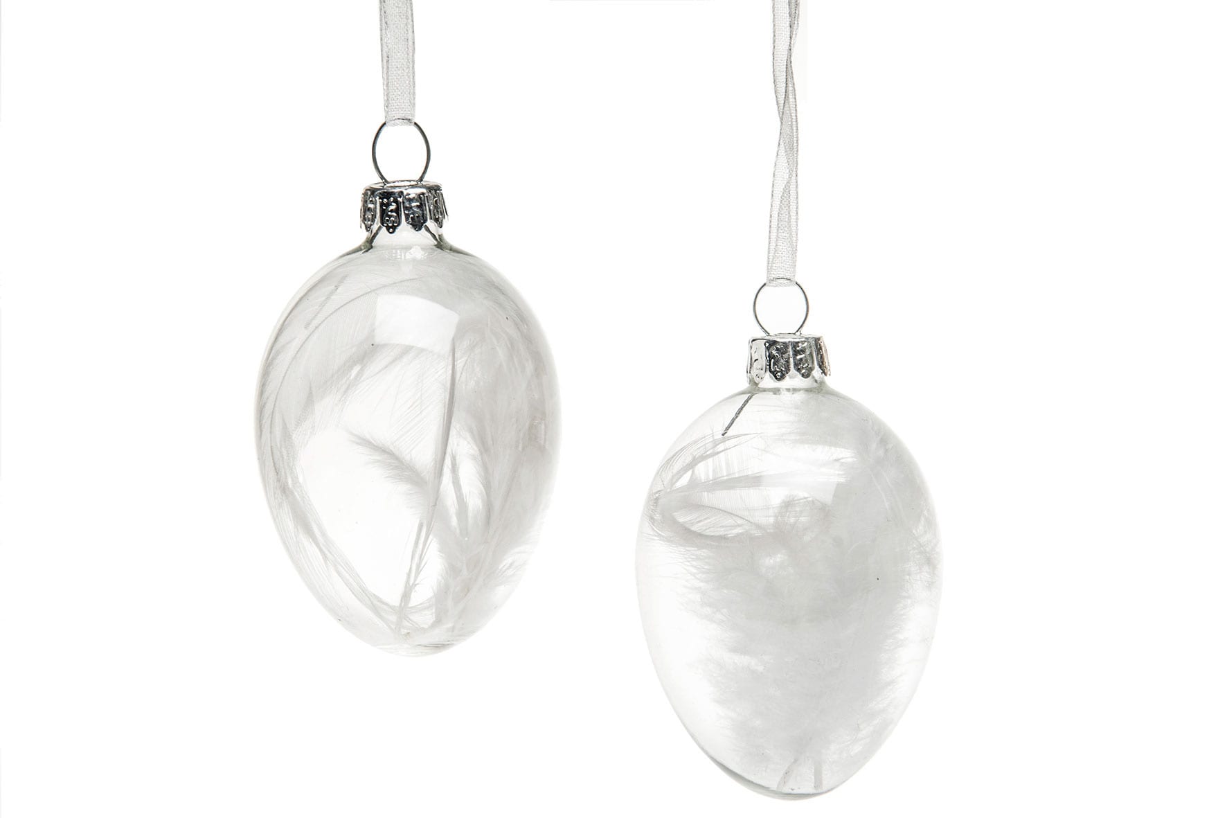 - Färg: Glasägg med vita fjädrar