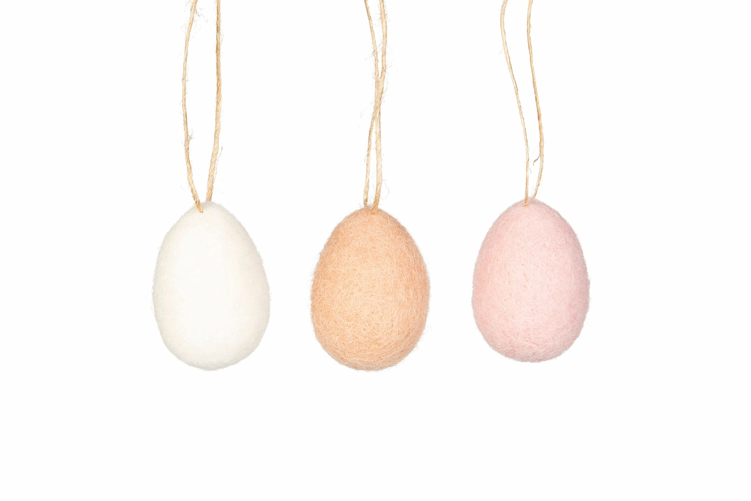 I setet ingår 9 dekorationsägg, tre av varje färg, som tillsammans skapar en lugn och stilren helhet. De mjuka ulläggen ger en tidlös och naturlig känsla och passar lika fint i det moderna hemmet som i en mer lantlig påskinredning.