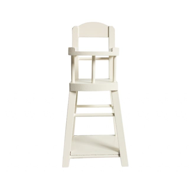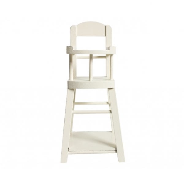 Hög Barnmatstol för Kaniner och Möss, i vitt trä för Mailegs microfigurer.