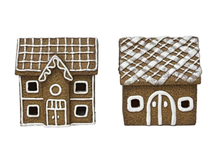 Storlek ca 8 cm. Pepparkakshusen finns i två varianter, du köper dem styckevis och de skickas slumpvis.