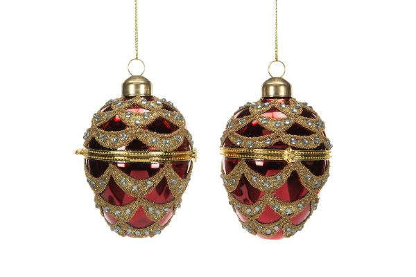 Exklusiv julkula i form av ett glasägg, underbar hängande juldekoration, öppningsbara julkulor, i härlig färg och mycket ”bling” – kanske gömmer du en liten present här inne? Du köper dem i 2 pack.