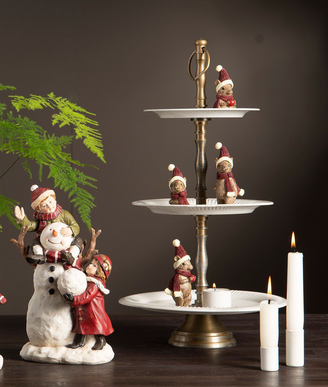Gulligt muspar som står upp. Båda har luva och halsduk, den ena håller i ett äpple. Blir gullig dekoration på bordet, i fönstret eller i adventsljusstaken.