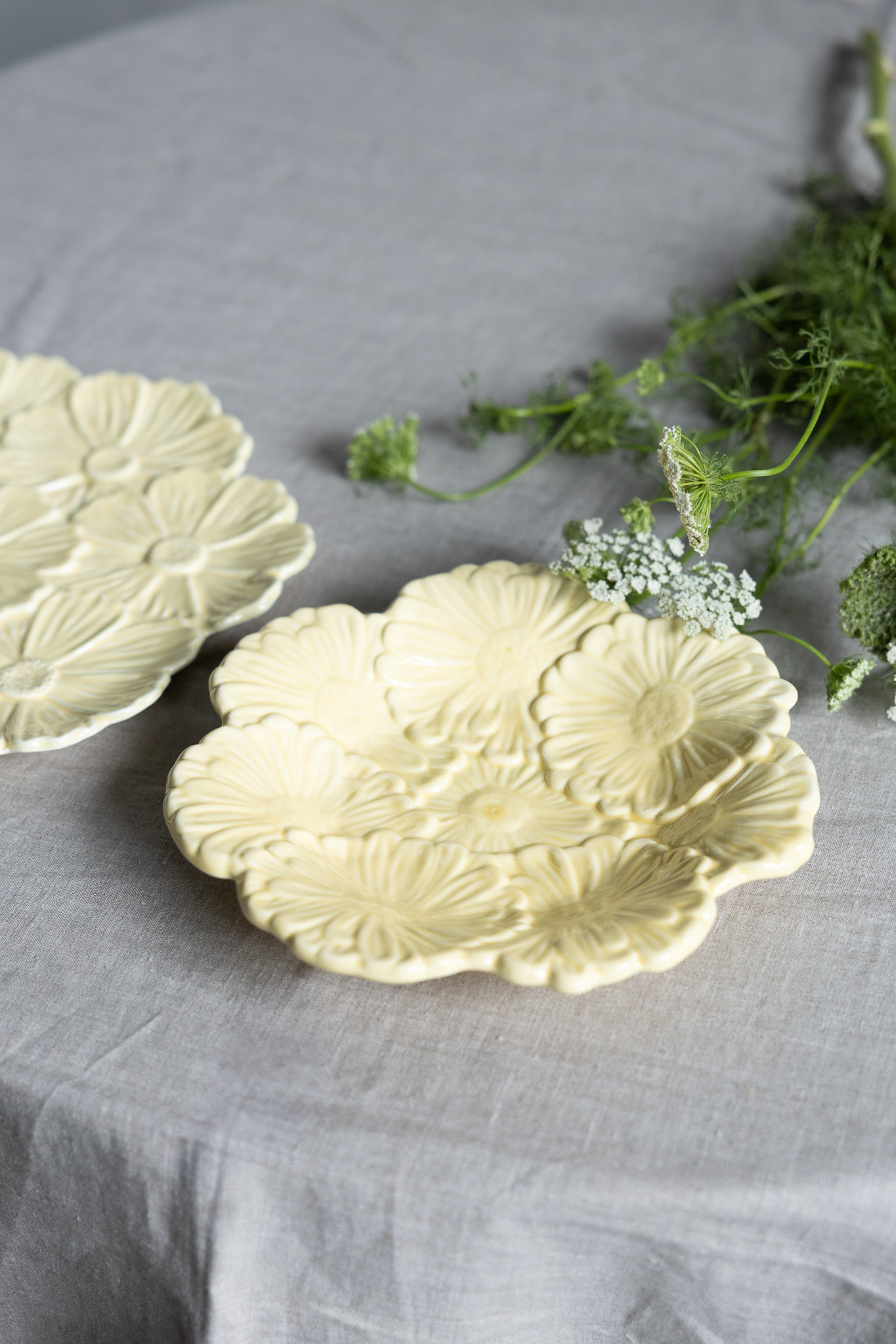 Ljuvligt gult keramikfat i form av blommor som blir en elegant och tidlös detalj i hemmet. Det är både dekorativt och funktionellt, perfekt för frukt, snacks eller som ett vackert blickfång på bordet. Varje fat är handgjort och har unika variationer i keramiken som ger en genuin hantverkskänsla. Handdisk rekommenderas. Ett fat som vill synas!