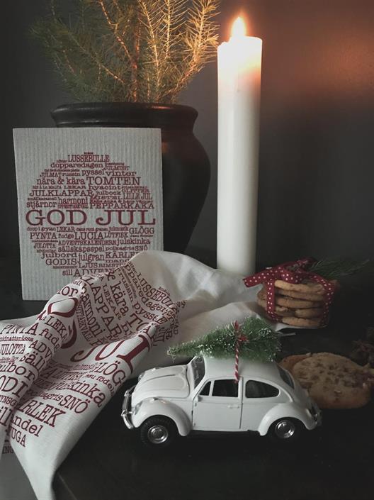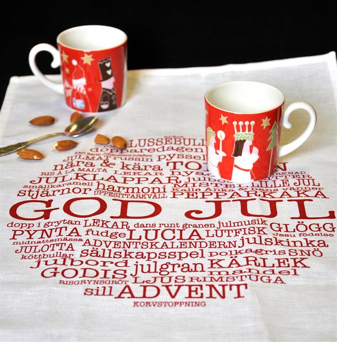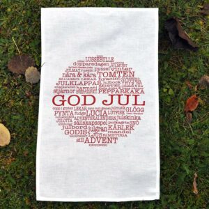 Vit kökshandduk med julens ord, Kökshandduk – God Jul-ord.