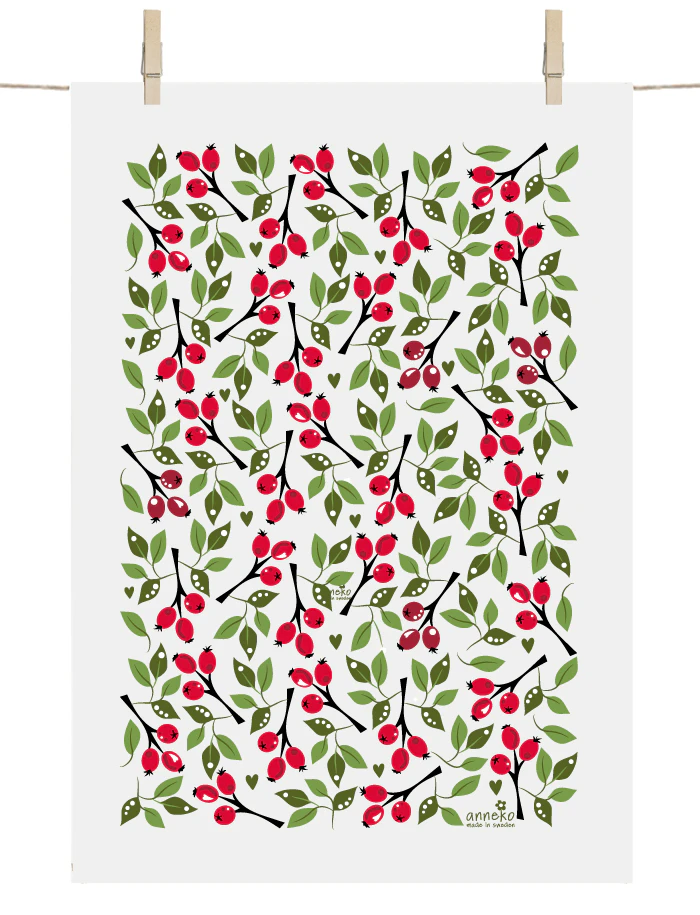 En underbart fin handduk med härligt motiv, Kökshandduk – Nypon.
