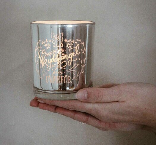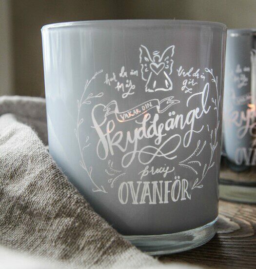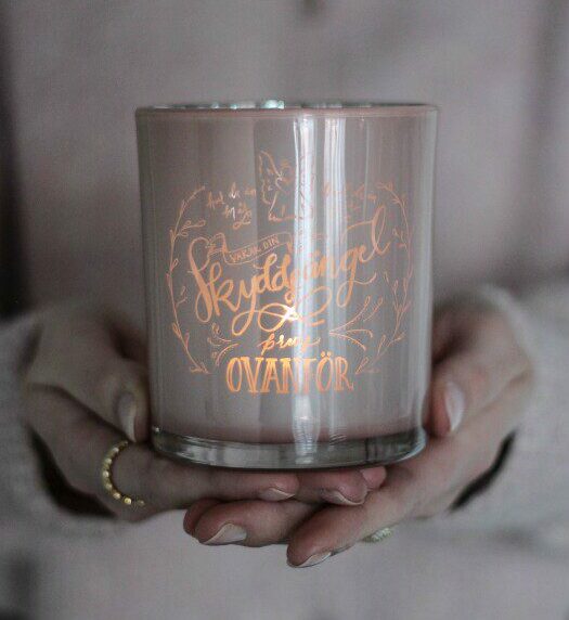 En fin ljuslykta i vitt, rosa eller silver från Majas Cottage med texten ”Hur du än mår vad du än gör vakar din Skyddsängel precis ovanför”, med kalligrafitext & illustration av Miss Papperista. Majas Lyktor är framtagna för att bringa hopp, glädje och tröst i kampen mot barncancer, vilket inte bara göra ljuslyktan till ett fint sätt att visa uppskattning, utan den gör dessutom verklig nytta. Ljuslyktorna från Majas Cottage säljs i en begränsad upplaga.