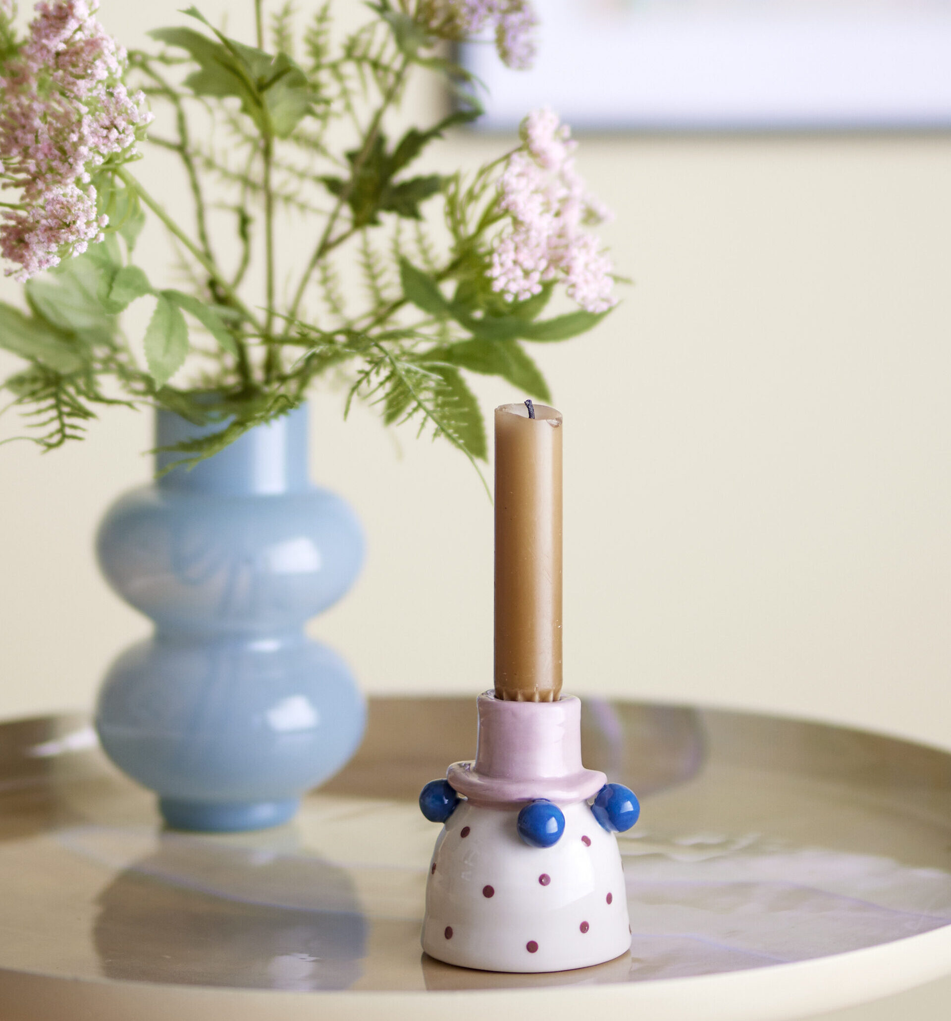Ljusstake Bloomingville – Tacana – Prickig Rosa – 7 x 9 cm