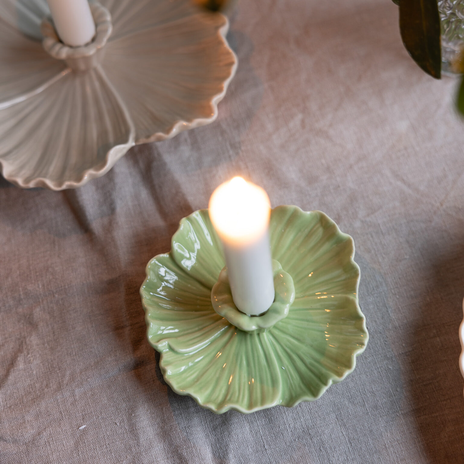 Blomformad keramikljusstake – unik och handgjord