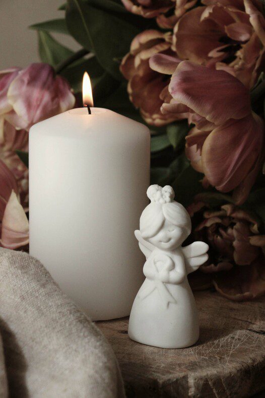 Majas Änglar är framtagna med stor kärlek och omtanke i design, budskap och känsla. Dessa änglar hoppas vi kan bringa hopp, glädje och tröst till både den som ger och får den. Vit ängel i matt keramik med budskapet: