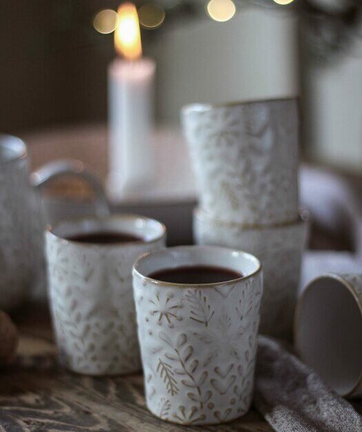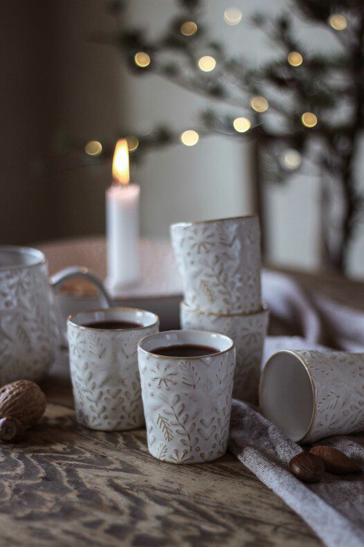 Söta glöggmuggar i keramik. Fint motiv som passar till jul och vinter med mönster av gran, kvistar, hjärtan, stjärnor och snöflingor. Säljs i en begränsad upplaga. Majas produkter är framtagna med extra kärlek för att skapa hopp, glädje och tröst i kampen mot barncancer.