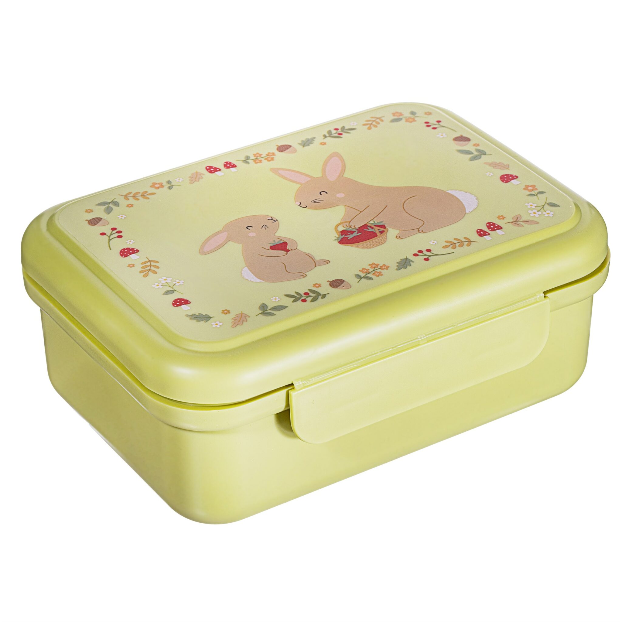 Praktisk matlåda med lock och gulligt motiv med kaniner. Perfekt när det är dags för utflykt, picknick och träning. Lock som klickas fast. Mått på matlådan: 12 x 11 5,5 cm. Ej mikrovågsugn. Du hittar våra övriga produkter i samma serie här.