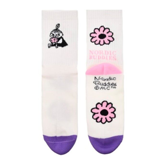 Perfekta strumpor för alla som älskar Mumin! Håll fötterna snygga och varma med våra underbara Mumin Strumpor – Retroinspirerade Muminstrumpor med Lilla My på vit botten och lila tå med lila/rosa detaljer i klassisk tennisstrumpsmodell. För dig som vill ha fina strumpor i lekfullt och roligt mönster som är lättsorterade efter tvätten 🙂 En storlek, passar 36-42.