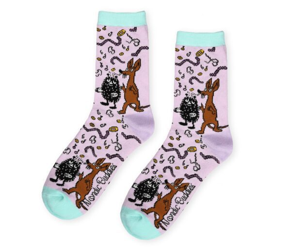 Perfekta strumpor för alla som älskar Mumin! Håll fötterna snygga och varma med våra underbara Mumin Damstrumpor med Stinky & Sniff. För dig som vill ha fina strumpor i lekfullt och roligt mönster som är lättsorterade efter tvätten 🙂 En storlek, passar 36-42.