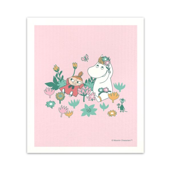 Fin disktrasa i härliga färger med vännerna Lilla My och Snorkfröken. Wettexduk Mått 18×12 cm. Disktrasan går att tvättas i tvättmaskin eller köras i diskmaskinen om den behöver fräschas upp, så kan du använda den längre.