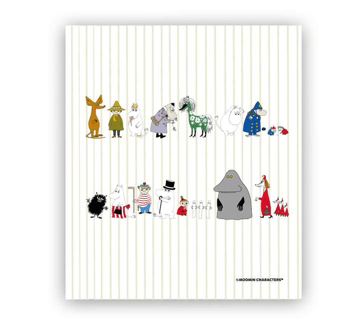 Söt wettextrasa från Opto Design med flera av Mumindalens karaktärer samlade på ett och samma ställe. Serien innehåller produkter med motiv från Tove Janssons originalritningar.