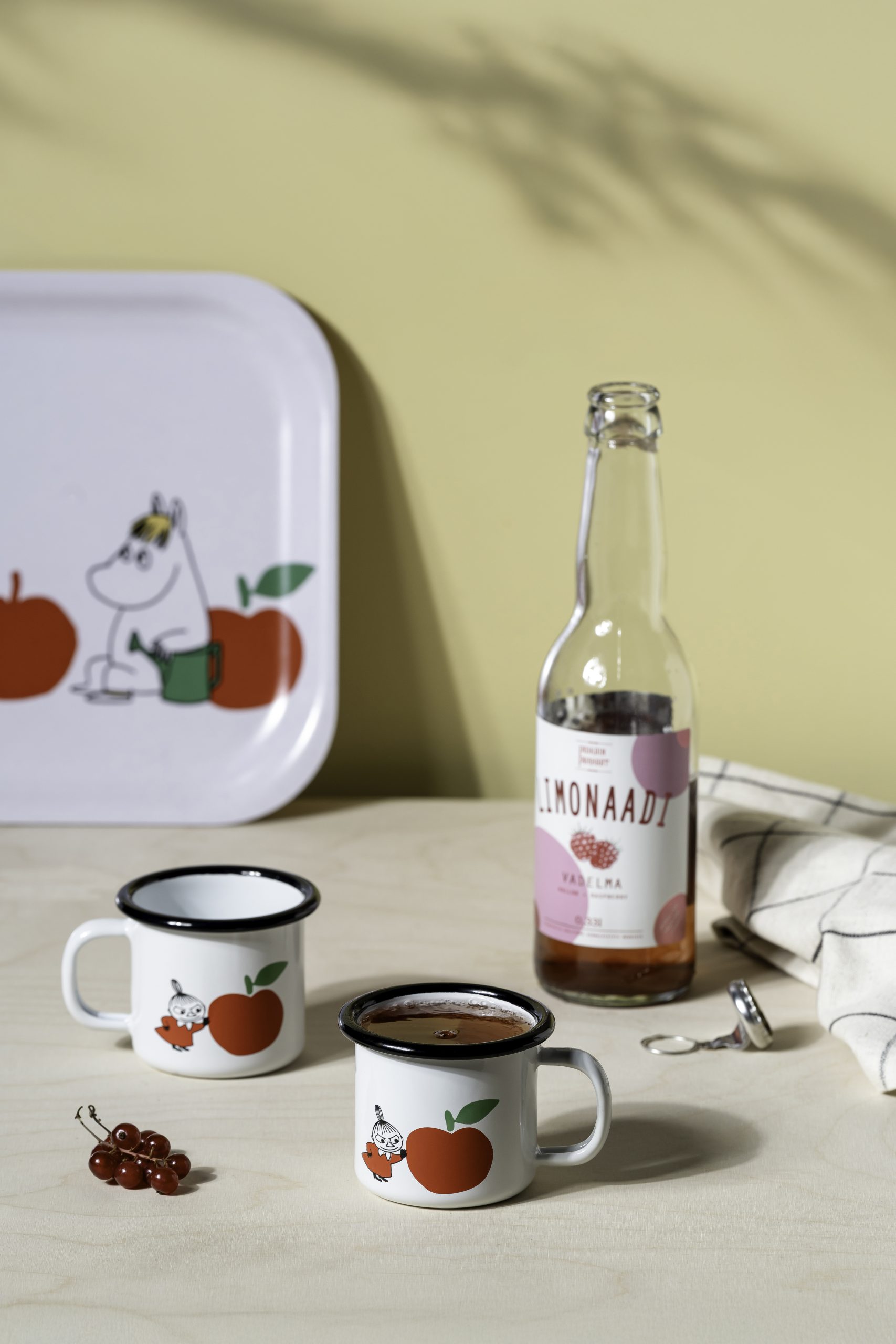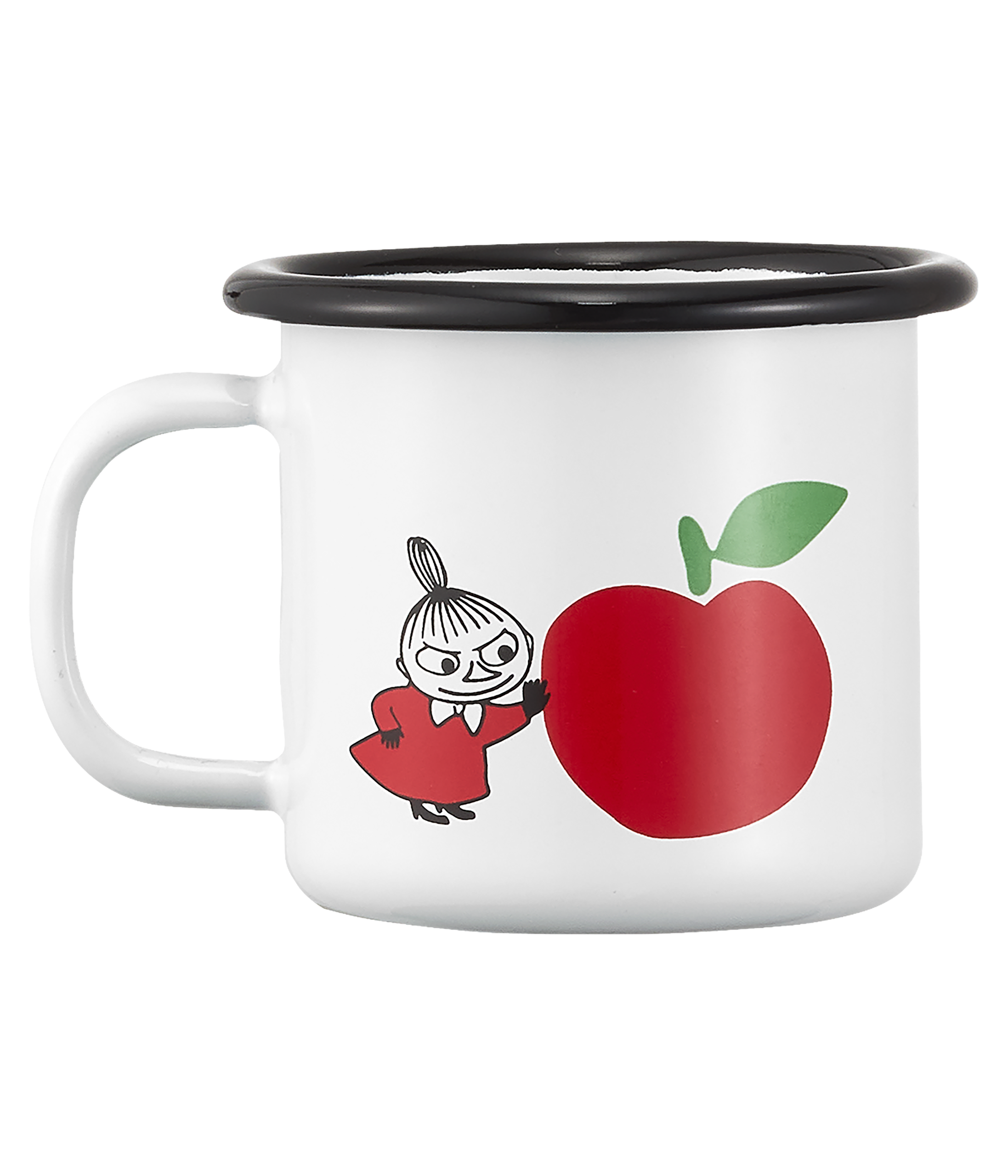 Mumin Emaljmugg Glada Äpplen med Lilla My, en härlig och söt mugg som är perfekt för den lilla handen.