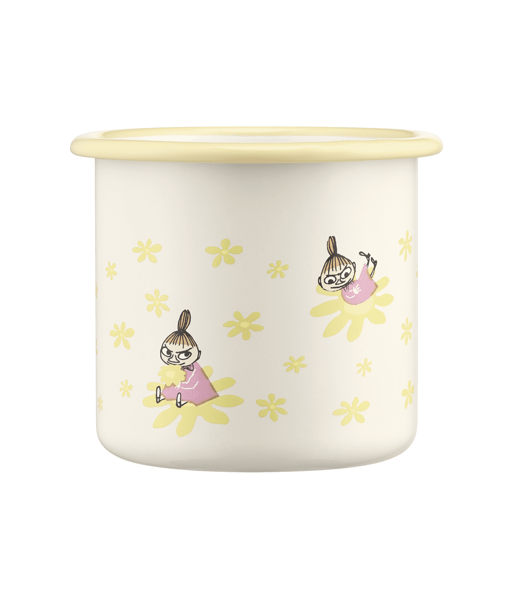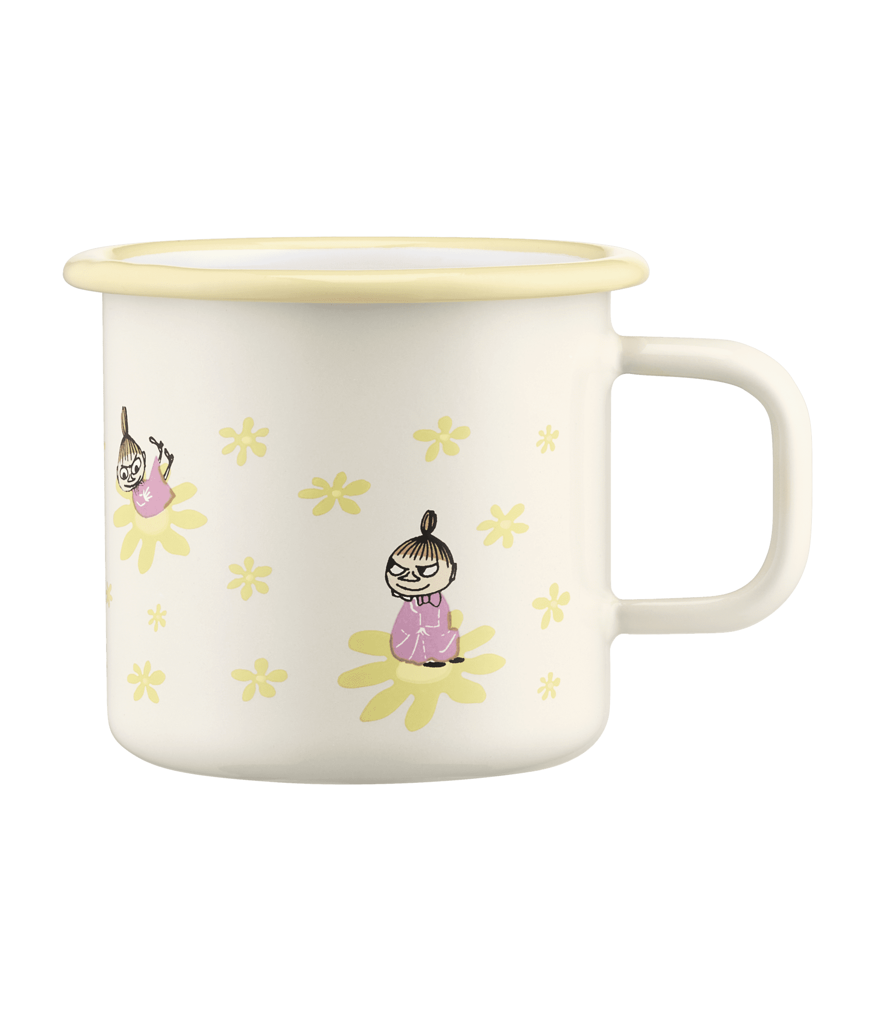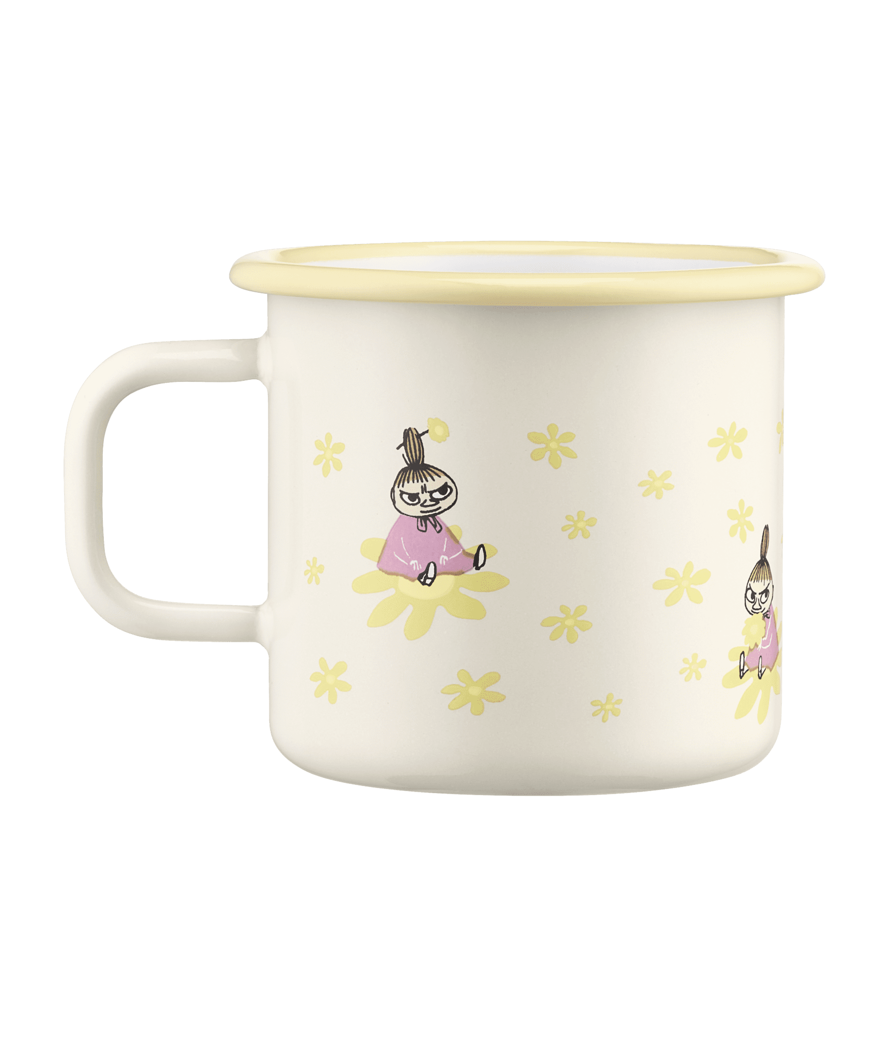 Lägstapris senaste 30 dagarna:Fin emaljmugg med sommarkänsla, praktisk mugg i fin gul färg och härligt motiv. Mumin Emaljmugg – Lilla My – Blommor, 3,7 dl