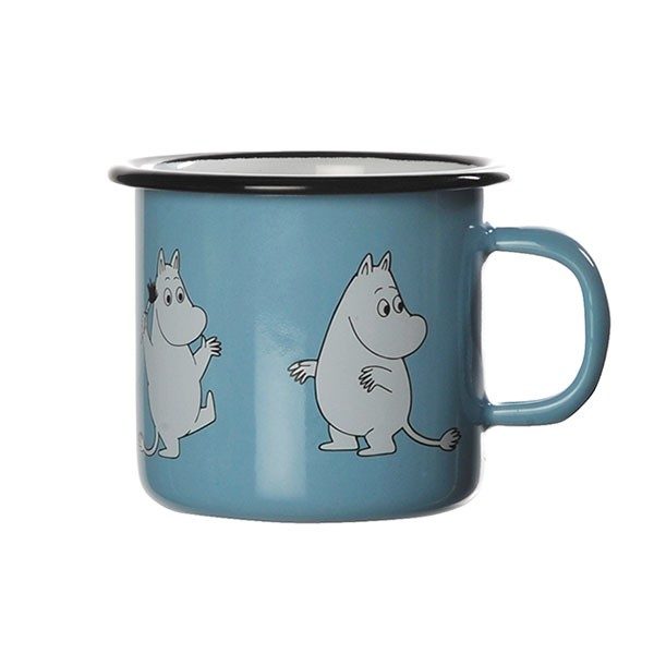 Klassisk, tålig och snygg. Emaljmugg i blått med Mumintrollet. Rymmer 2,5 dl. Perfekt för utflykten, båten och på landet.