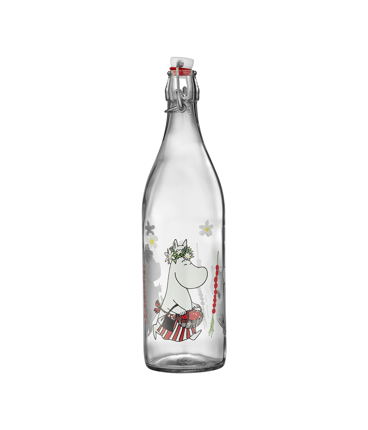 Mumin Glasflaska med Patentkork, 1 L – Smultron
