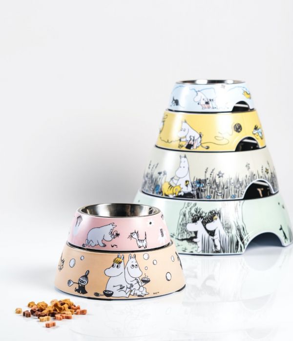 Det är klart att även våra husdjur måste ha en fin matskål! Underbar matskål med Mumintrollet, Snorkfröken, Stinky och Lilla My i en beige färg. Storlek Medium, med en diameter på 17,5 cm. Skålen är i rostfritt stål och kan enkelt lyftas upp från ytterdelen i melamin, då den skall rengöras.
