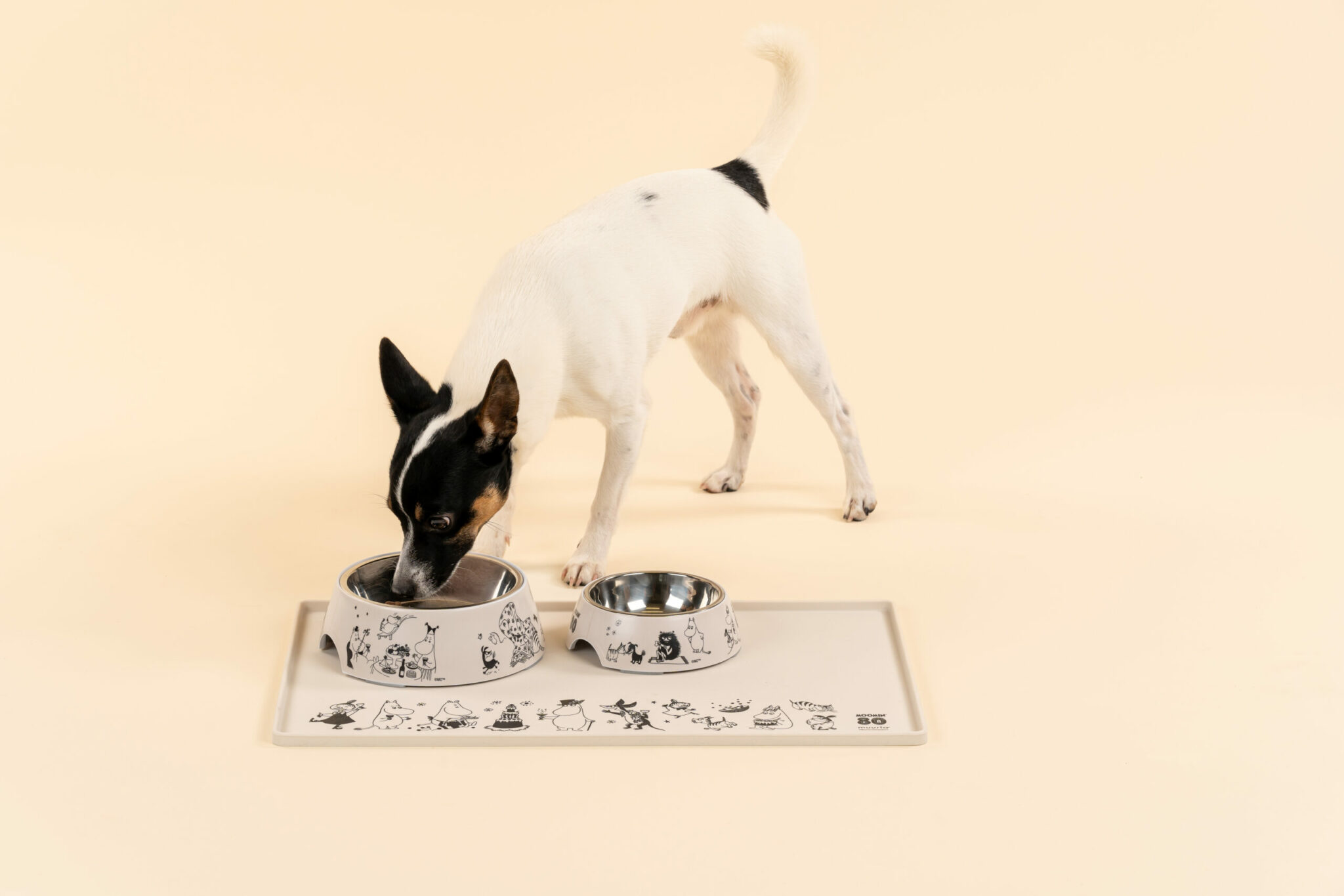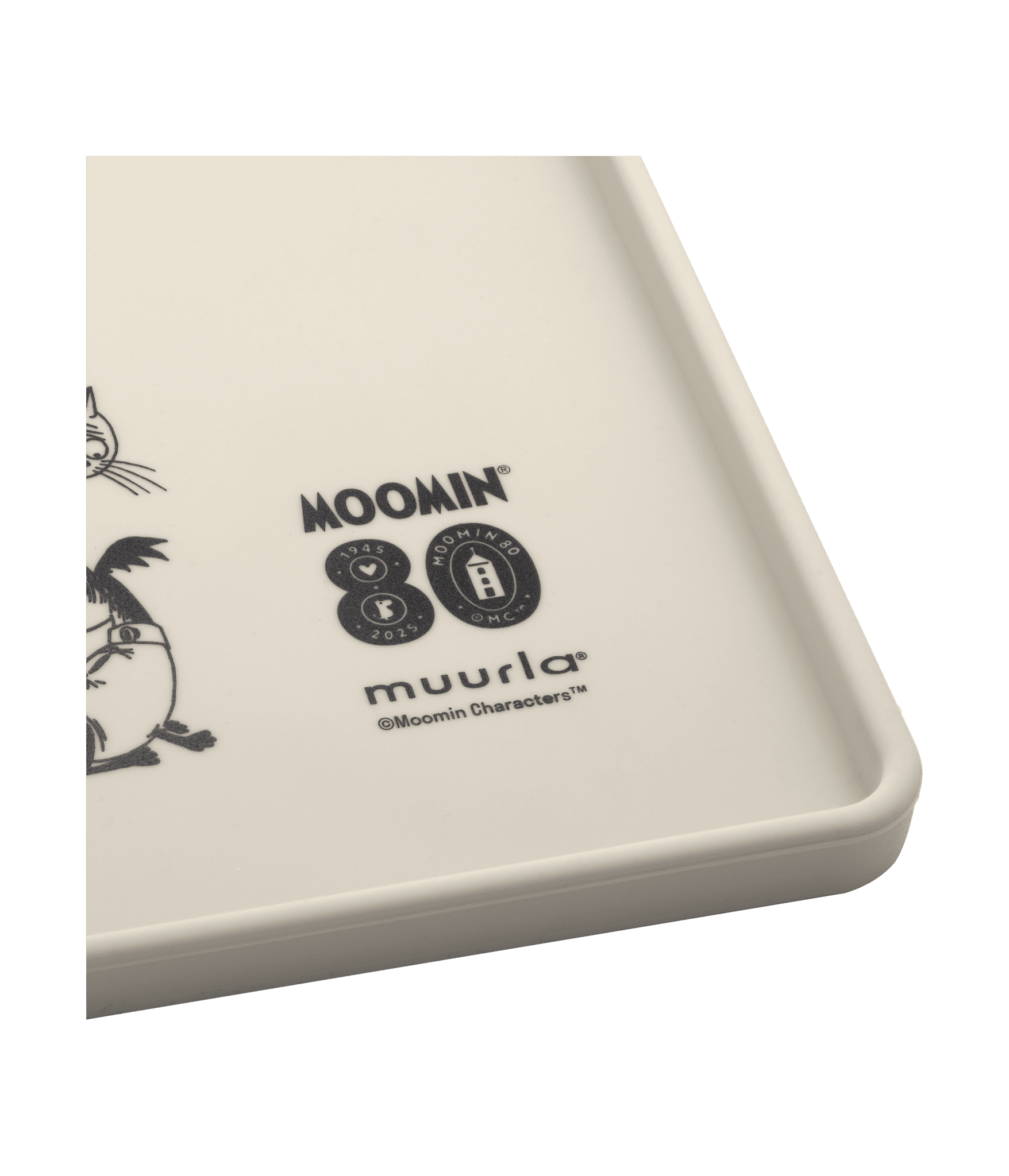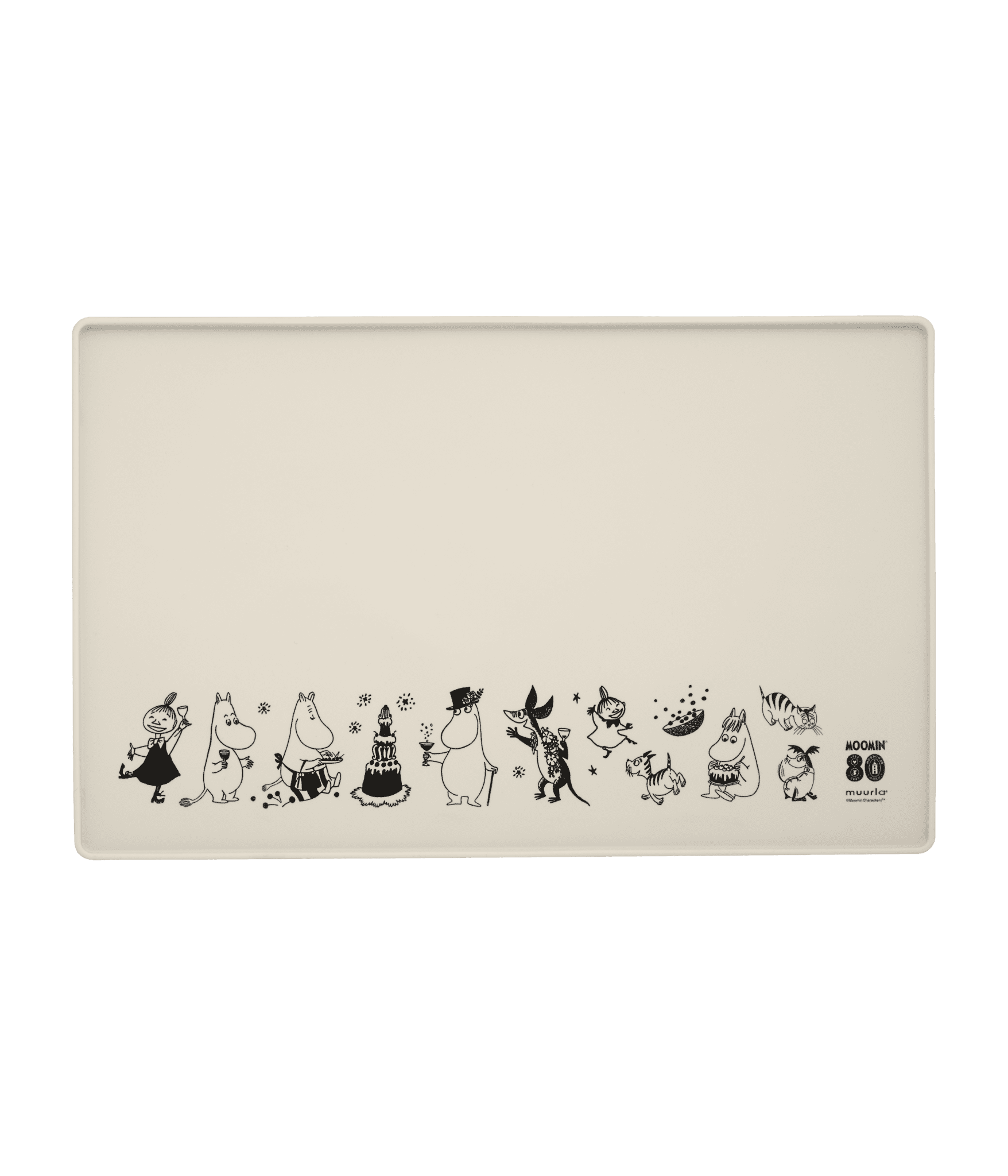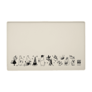 Det är klart att även våra husdjur måste få sin mat fint framdukad. Praktisk silikonunderlägg med små kanter. Hindrar matskålen från att åka runt på golvet, eventuellt vatten och spill stannar kvar på underlägget som är lätt att göra rent. Fint motiv på beige botten, framtaget till mumintrollens jubileumsår 2025 då mumintrollen fyller 80 år. Storlek 48 x 30 cm.