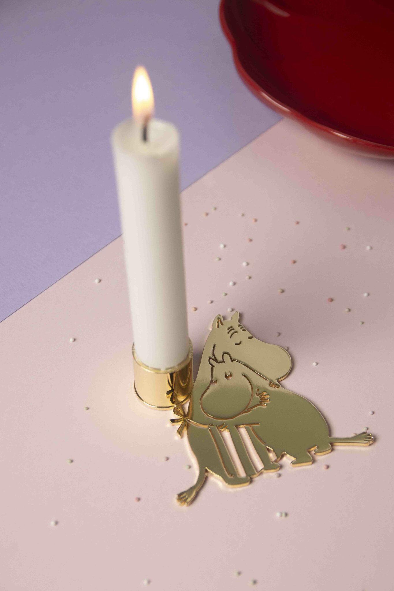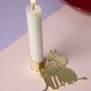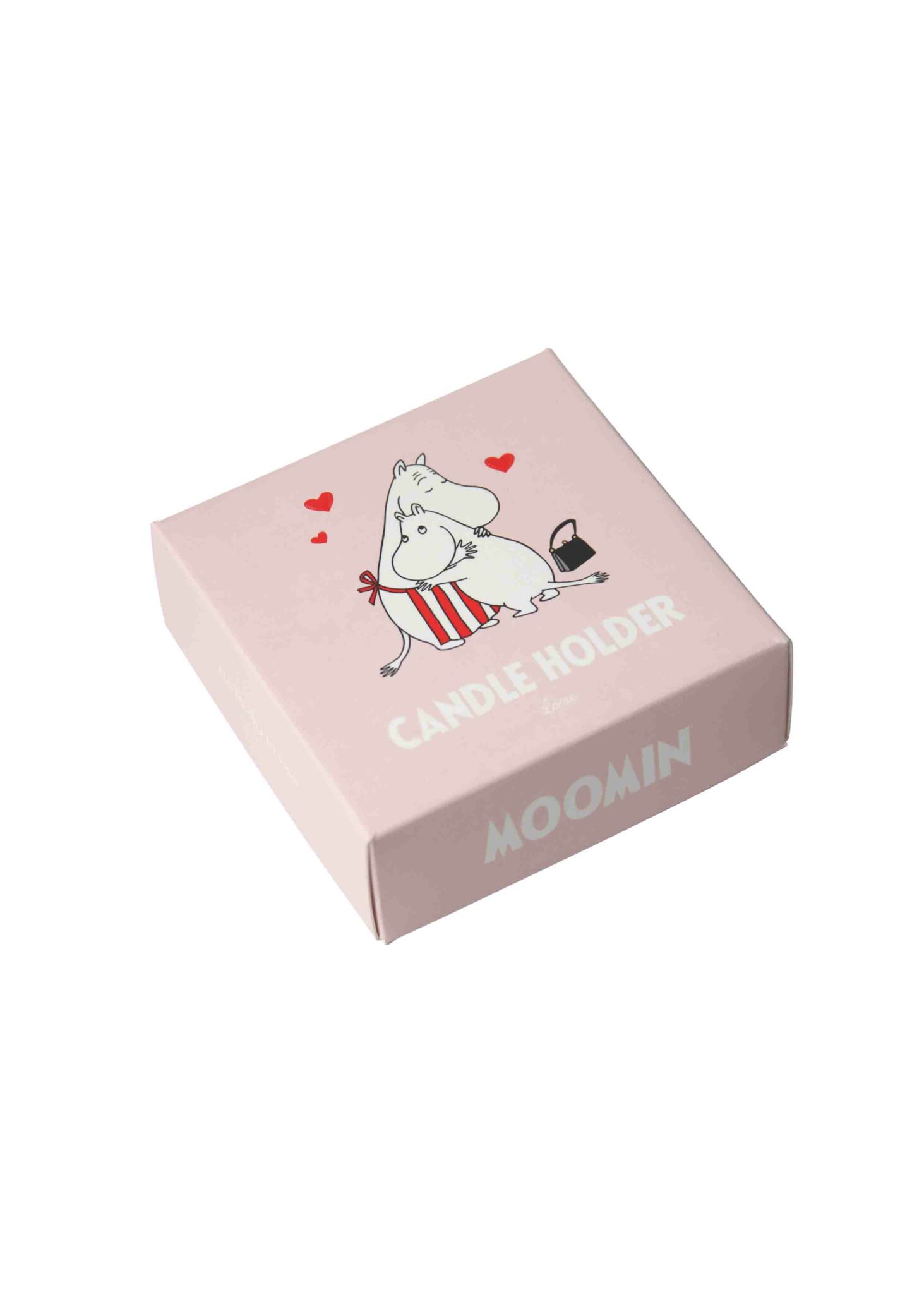 Underbart söt ljusstake med plats för ett ljus, motiv med Muminmamman och Mumintrollet som kramas. Dekorativ detalj och kärleksfull gåva till någon du tycker om. Du köper ljusstaken en och en.