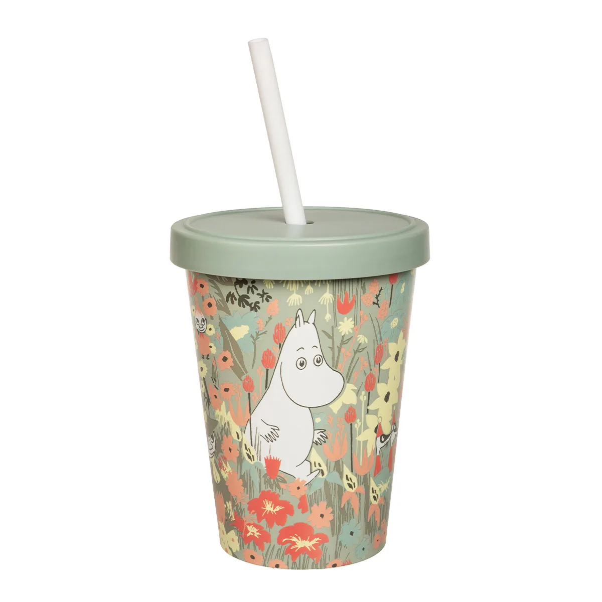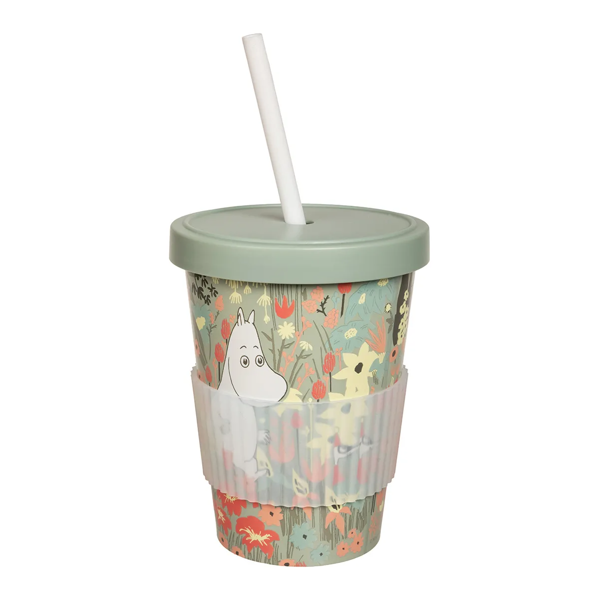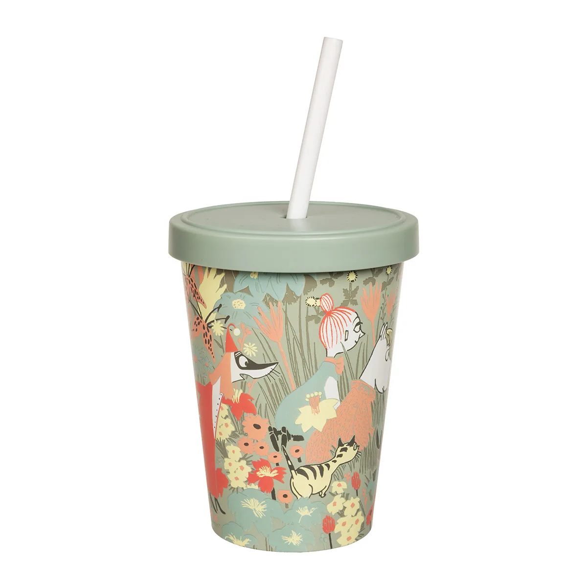 Praktisk mugg med sugrör och lock och muminmotiv. Perfekt på sommaren, för att undvika kryp i din dricka. Förvaras stående då den är fylld, då den inte håller tätt om den ligger ner, eller vänds upp och ner.