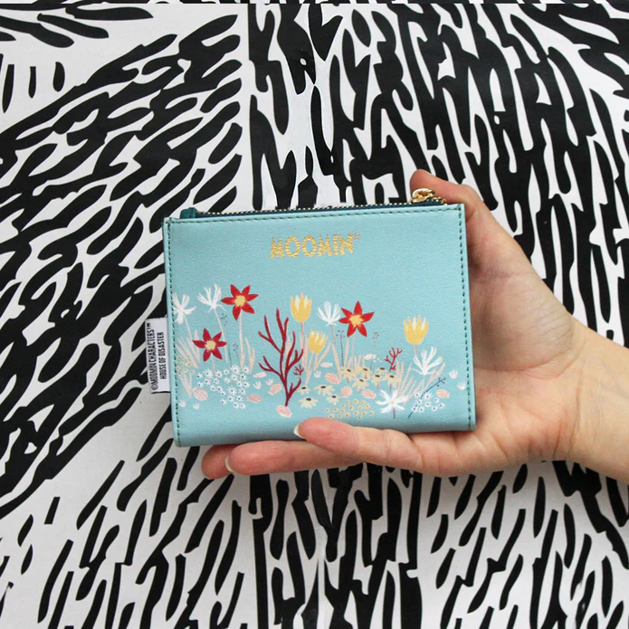 Denna plånbok passar alla muminvänner som behöver en smidig, söt och praktiskt plånbok. Plånboken har guldfärgad dragkedja