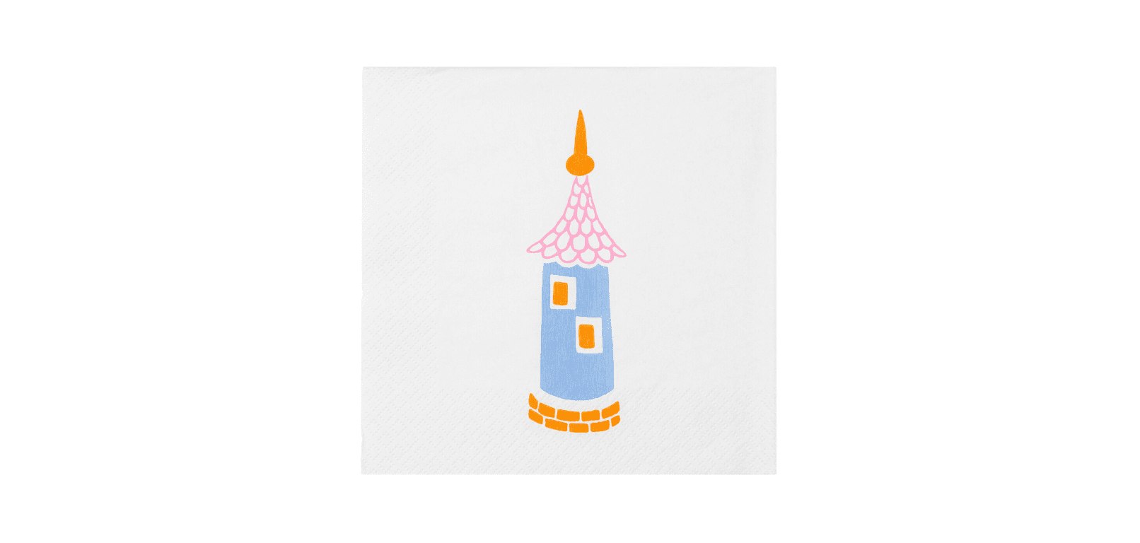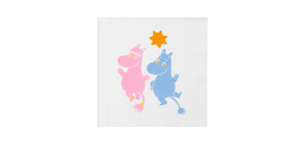 Fina muminservetter med festligt motiv. Lekfulla illustrationer i härliga färger som är baserade på Tove Janssons teckningar från 1950-talet. Paket med 20 servetter som utfällda mäter 33 x33 cm.