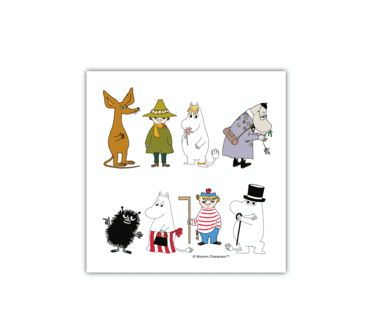 Gillar man Mumin måste man så klart även ha en servetter med Mumin. Muminservetter med vit bakgrund med flera av Mumindalens mest älskade karaktärer.