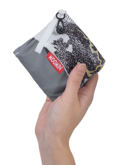 En återanvändbar påse är ett miljövänligt val. Använd en ekologisk återanvändbar shoppingkasse istället för en plastpåse när du handlar resor. Lasessors återanvändbara Muminpåse är 1,5 gånger rymligare än en traditionell plastpåse i butik. Tack vare den integrerade skyddsväskan kan du också bekvämt bära den återanvändbara väskan med dig, till exempel i en ficka eller väska.