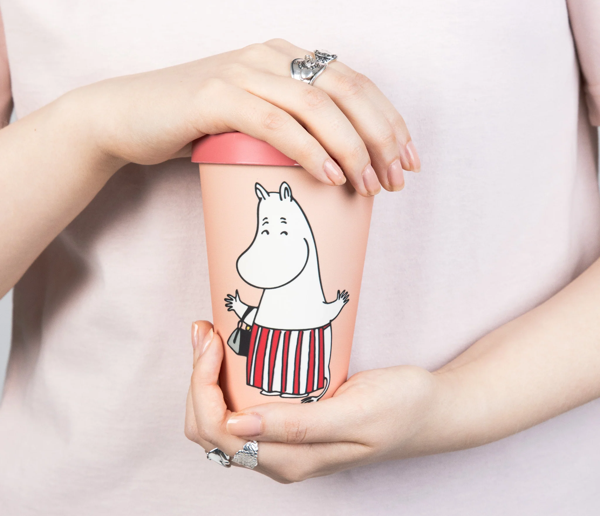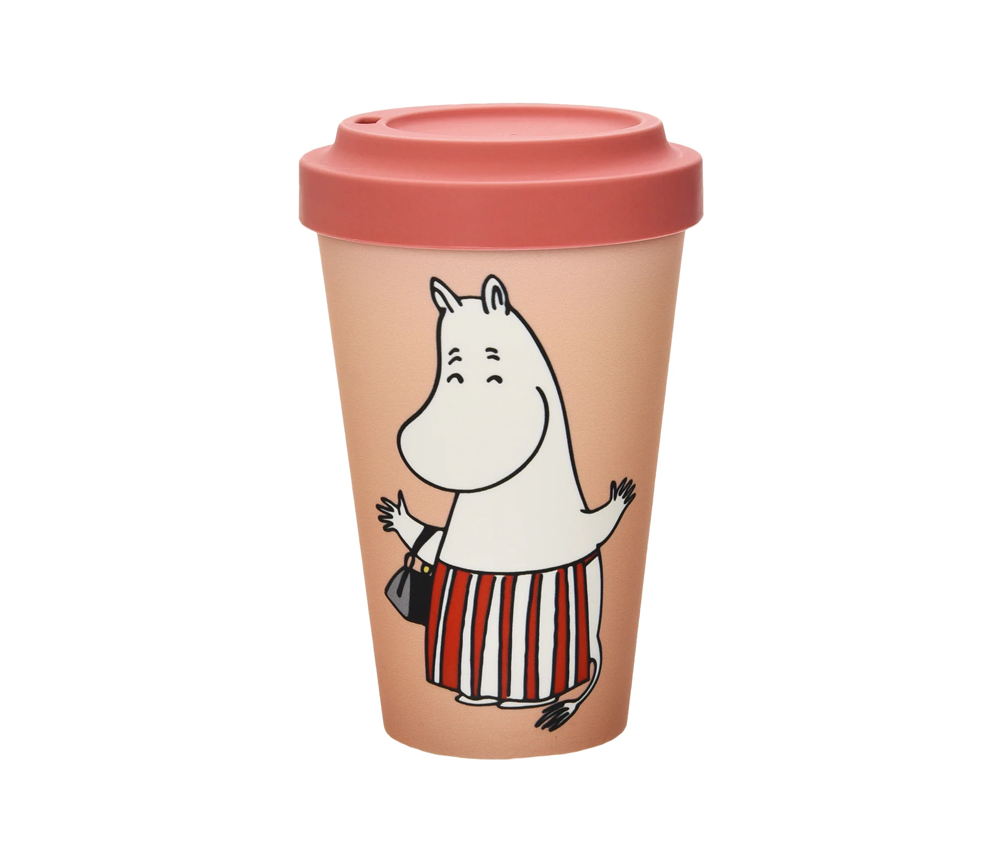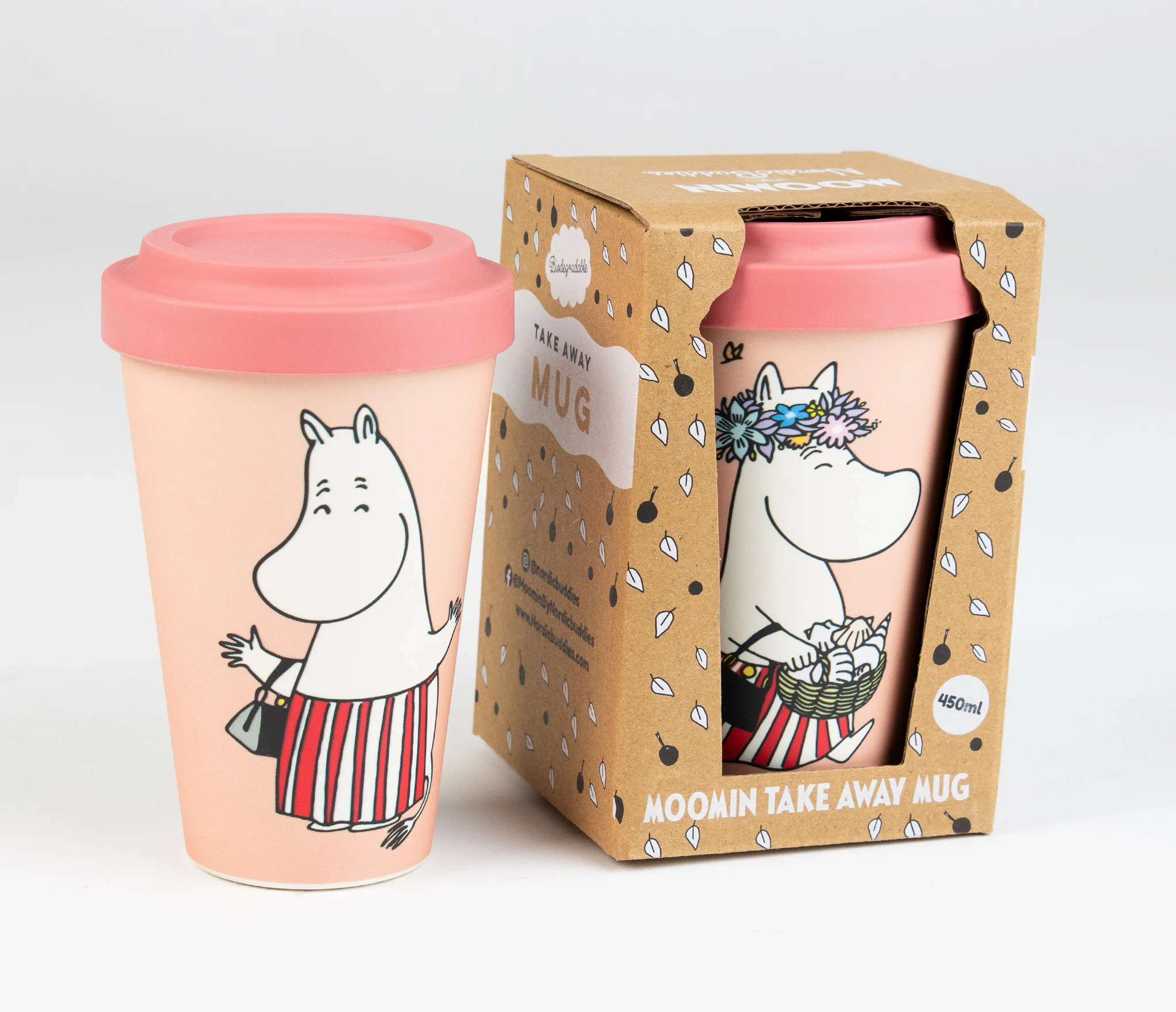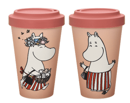 Söt take-away mugg med muminmamman i full fart, och med en fin blomsterkrans på huvudet. Lock av silikon. Muggen är tillverkad av PLA som är ett helt biologiskt nedbrytbart och förnybart material. Det ser ut som plast men innehåller INGEN fossilbaserad plast alls. Silikonlocket går att återvinna. Muggen rymmer 450cl och kommer i en fin presentask.