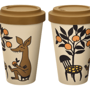 Söt take-away mugg med Sniff som plockar apelsiner. Lock av silikon. Muggen är tillverkad av PLA som är ett helt biologiskt nedbrytbart och förnybart material. Det ser ut som plast men innehåller INGEN fossilbaserad plast alls. Silikonlocket går att återvinna. Muggen rymmer 450cl och kommer i en fin presentask.