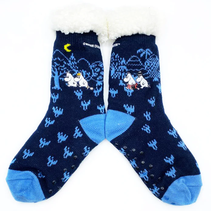 Mjuka, sköna, söta och praktiska! Mumin sockor med teddyfoder och halkskydd – Skogen. Perfekt för alla frusna fötter!
